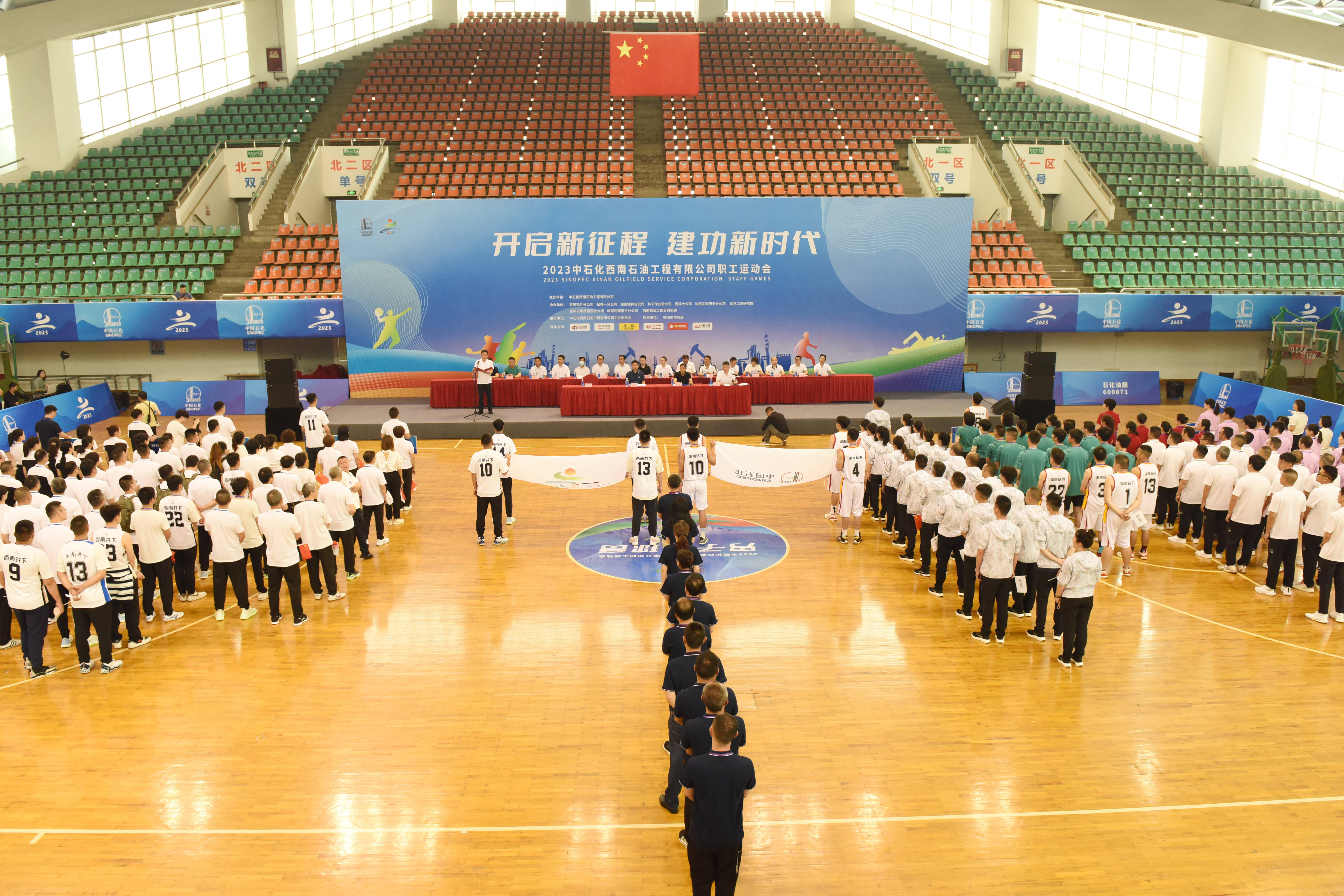2023年5月16日,中石化西南石油工程有限公司在德阳市体育馆举办“开启新征程 建功新时代”2023年职工运动会,经过4天的激烈角逐,篮球、羽毛球、乒乓球和游泳4个竞赛项目共产生99枚奖牌。I0支参赛队伍,近300名运动员参加比赛。
